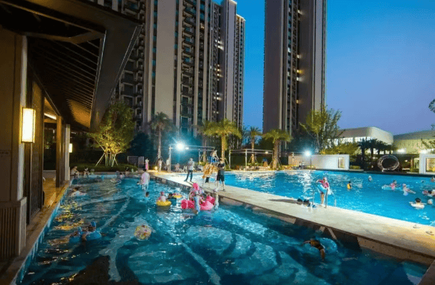 内部配套:装备酒店式会所,有私宴厅、下沉式院子等,还设有恒温泳池、健身房,地下车库选用环氧地坪和智能泊车体系。